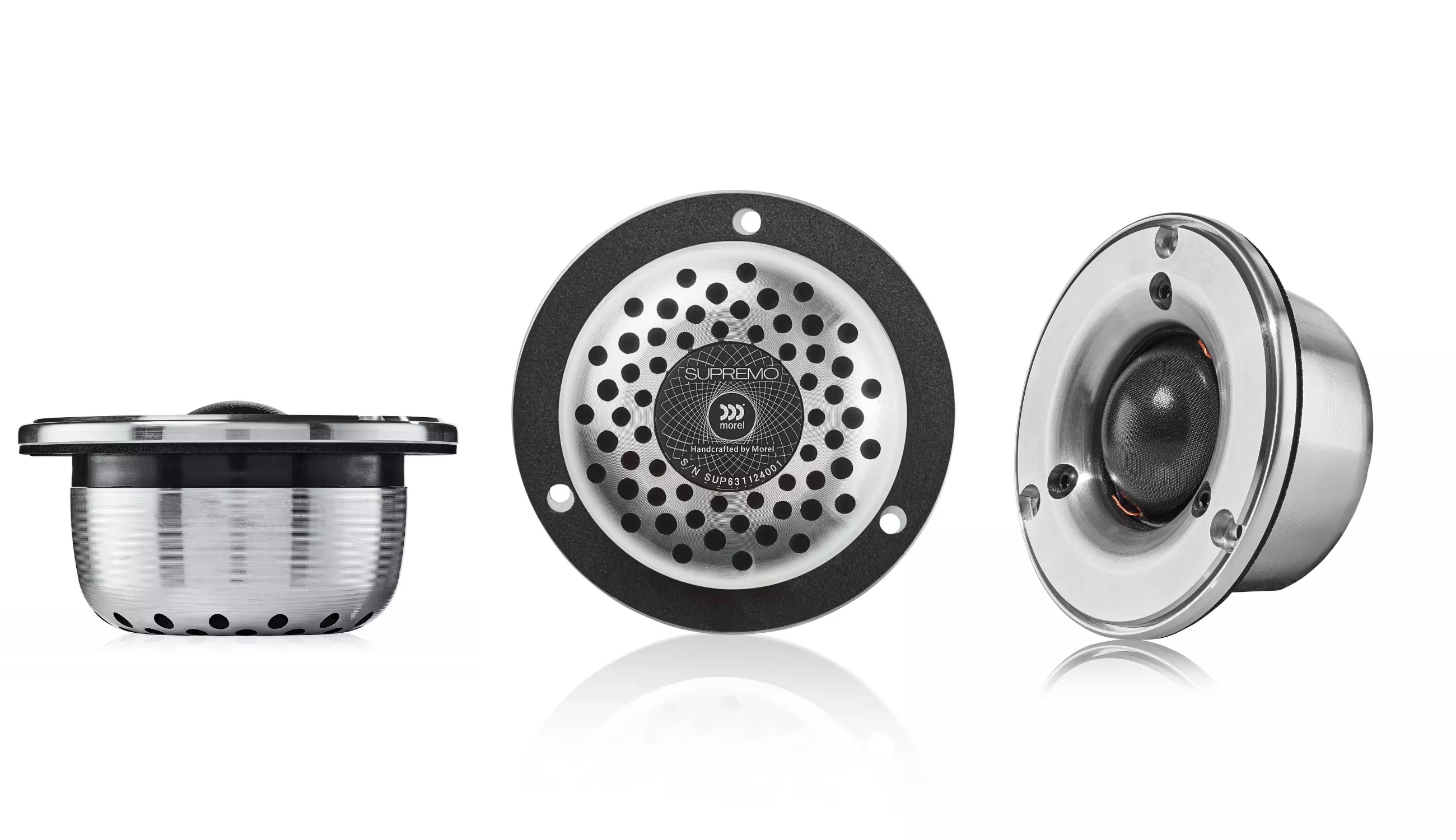 Supremo 高音單體採用了 Morel 專利的 Acuflex™ 軟半球振膜,這是一種經過特殊阻尼處理的振膜設計,可有效控制共振並消除刺耳感;使高音能夠呈現細緻、清澈的高頻,同時保有自然且耐聽的音色特性。